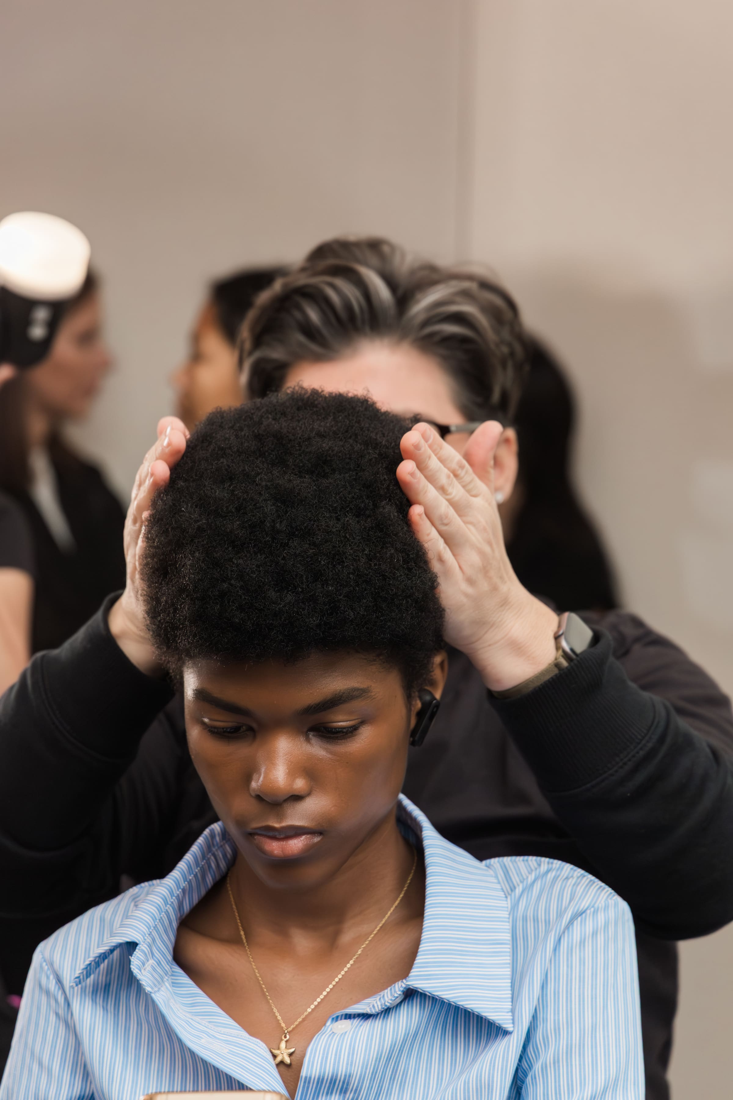 Photographed at NYFW, this series captures the essence of runway artistry—poised models, thoughtful styling, and the immersive atmosphere of the show space. From the focused preparations backstage to the runway’s front-facing energy in motion.