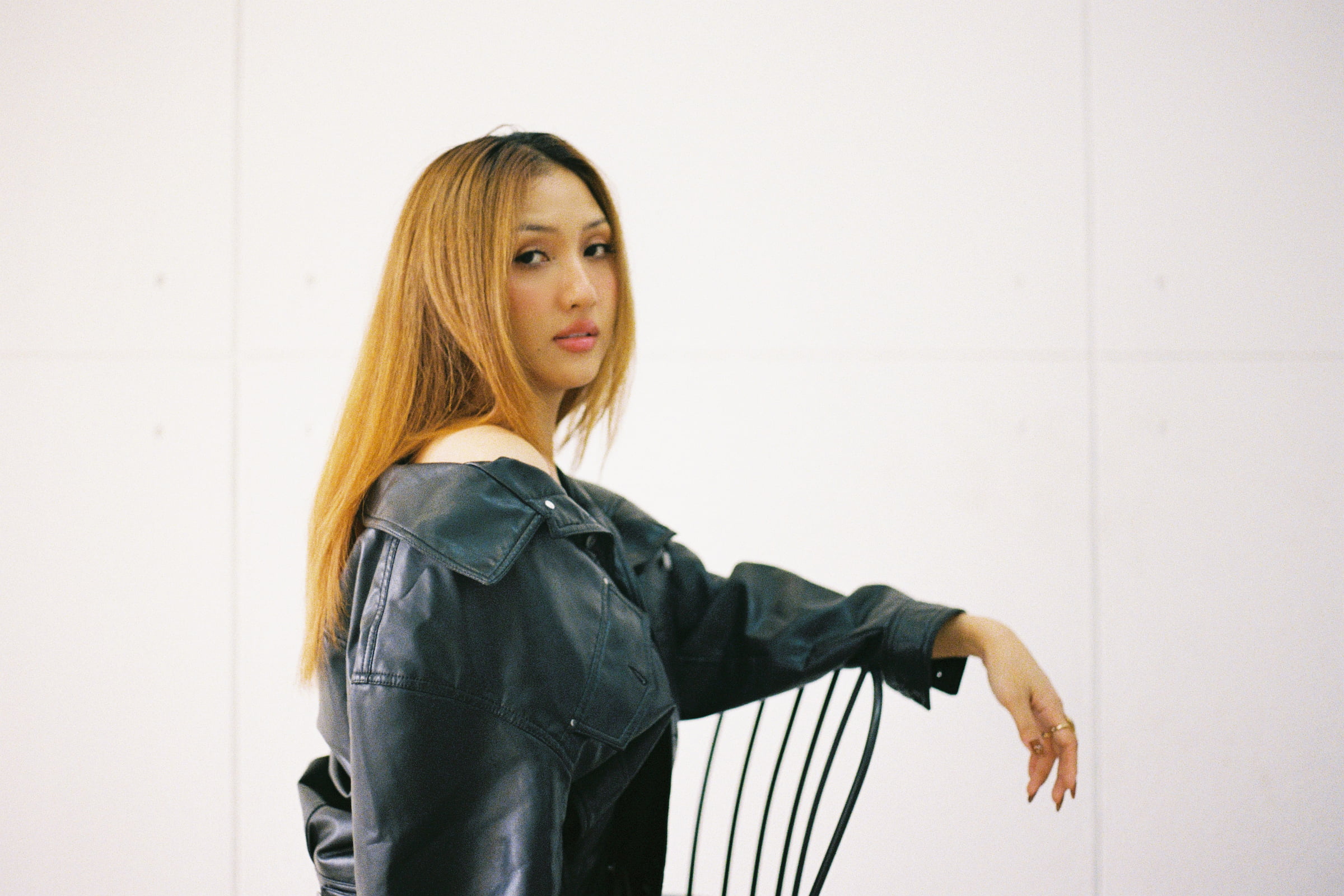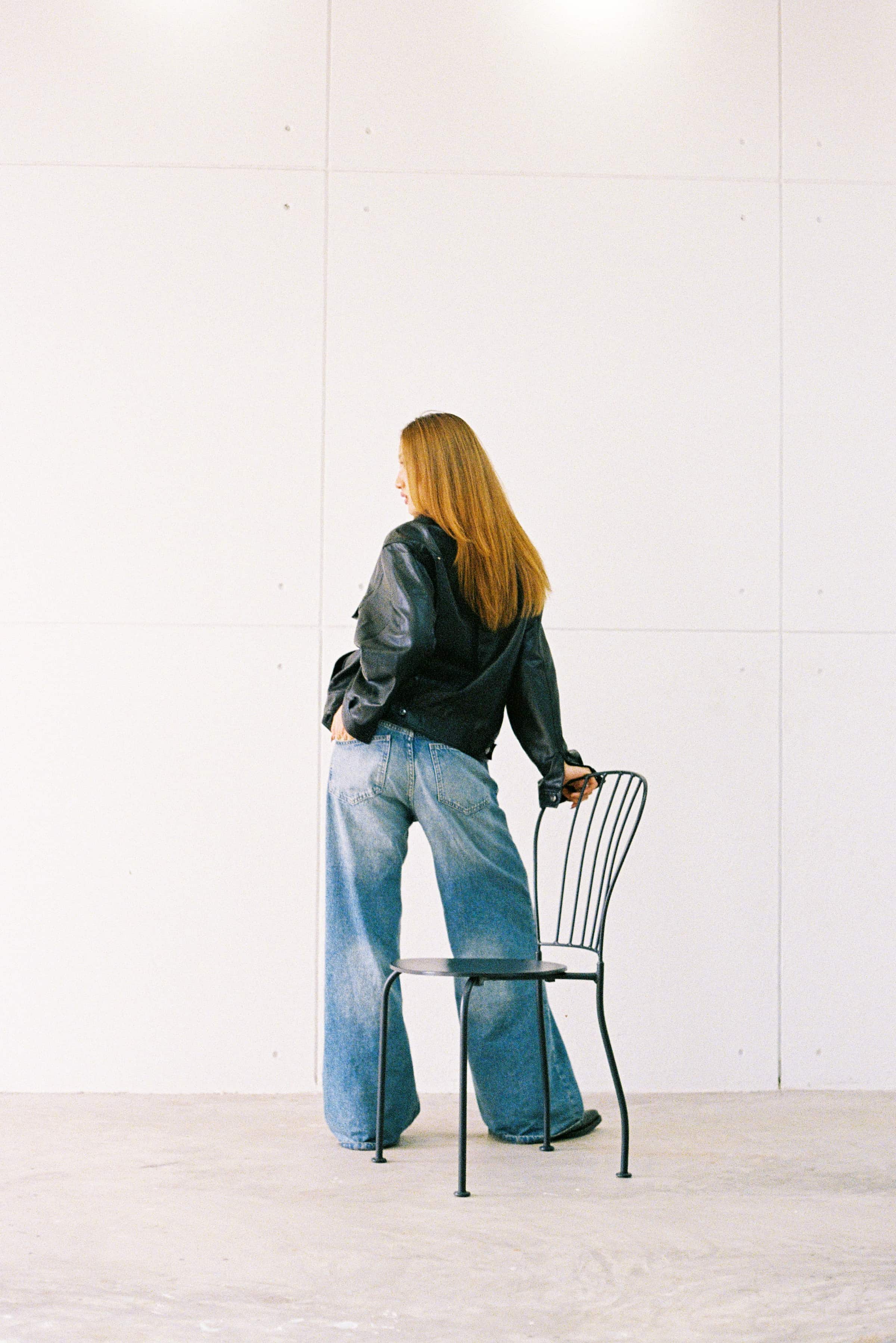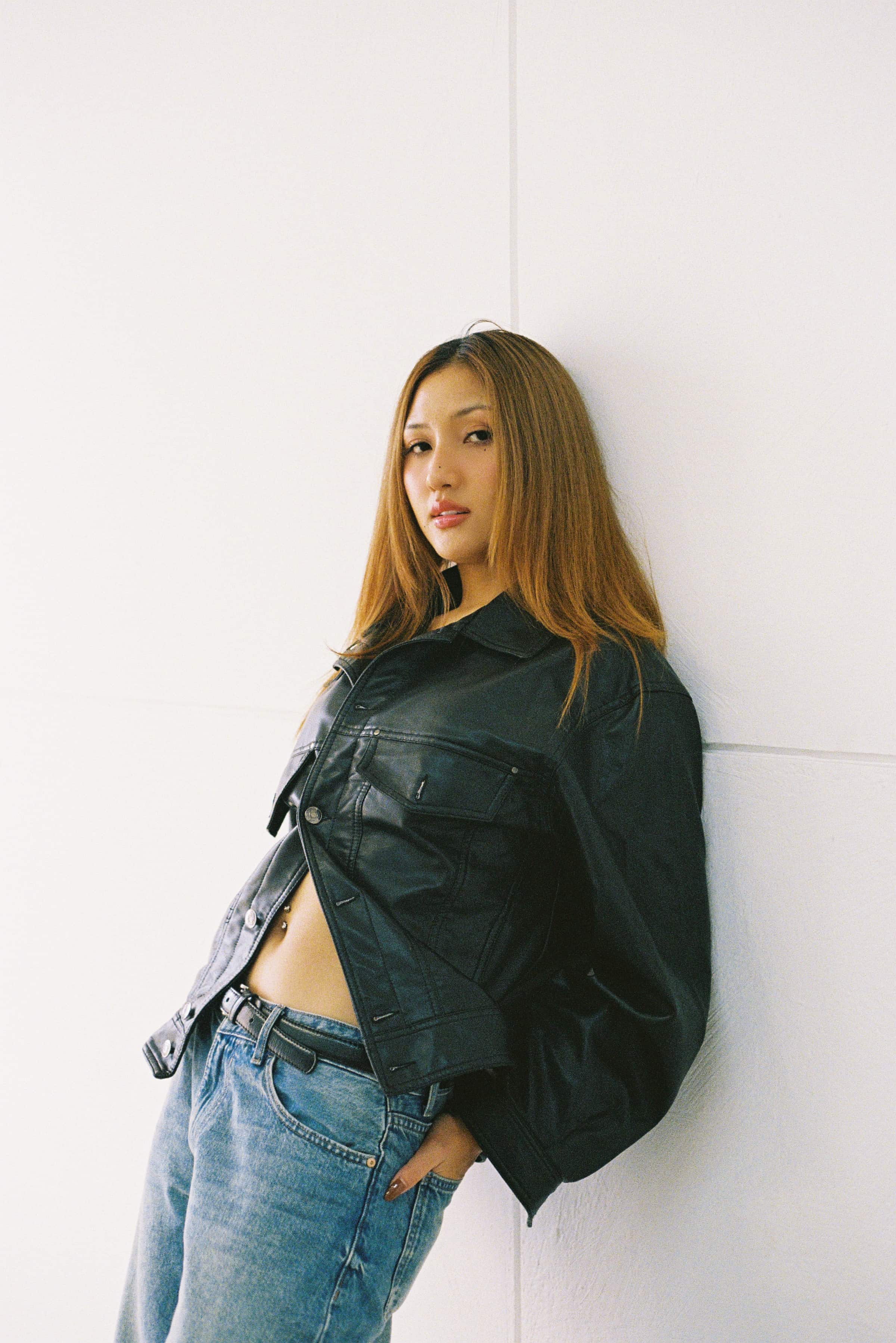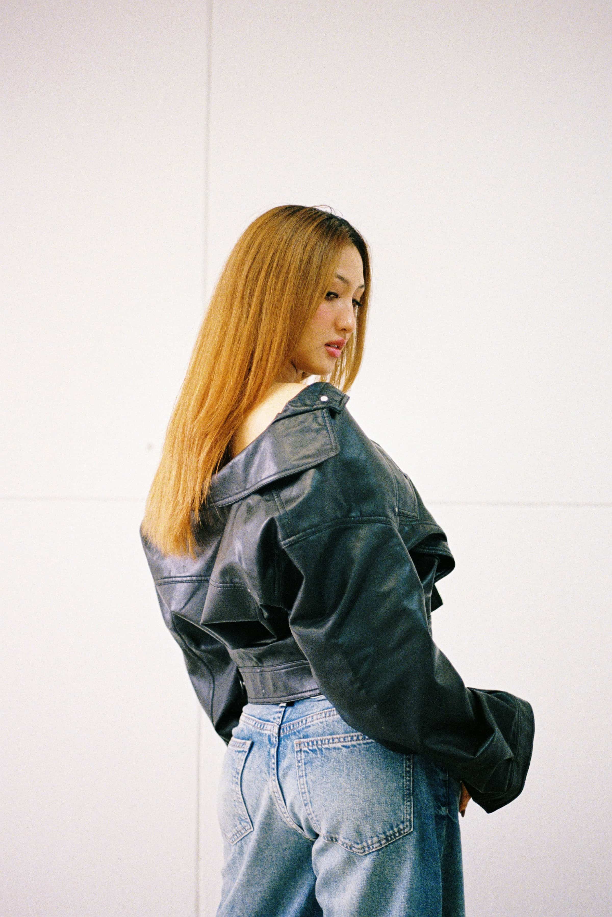 A clean, modern portrait serie of the model M Seng Lu, captured through natural light, relaxed poses, and a timeless mix of leather and denim.